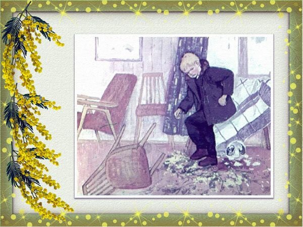 (1)Утром в хрустальной вазе на столе Витя увидел огромный букет мимозы.